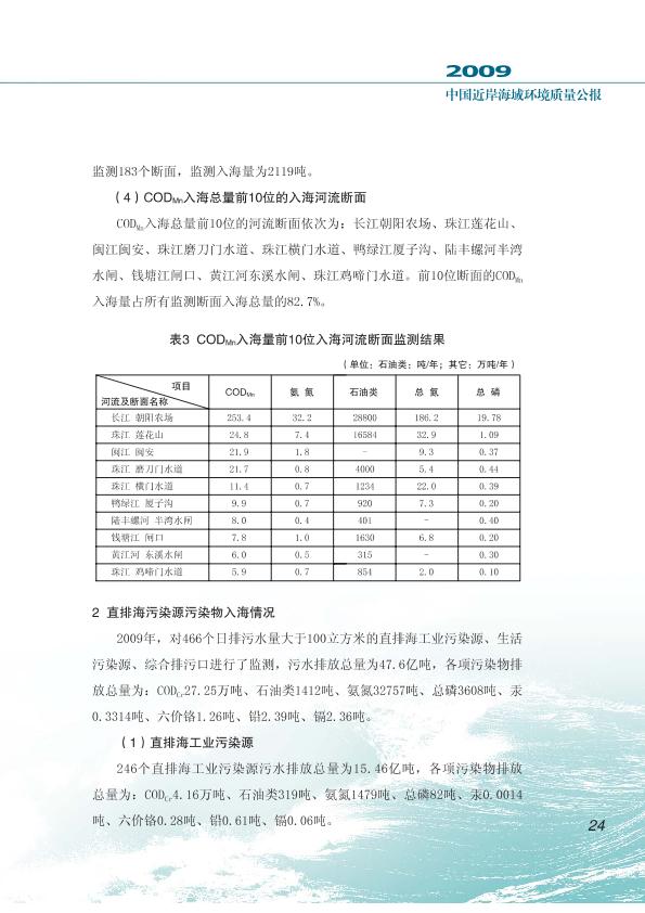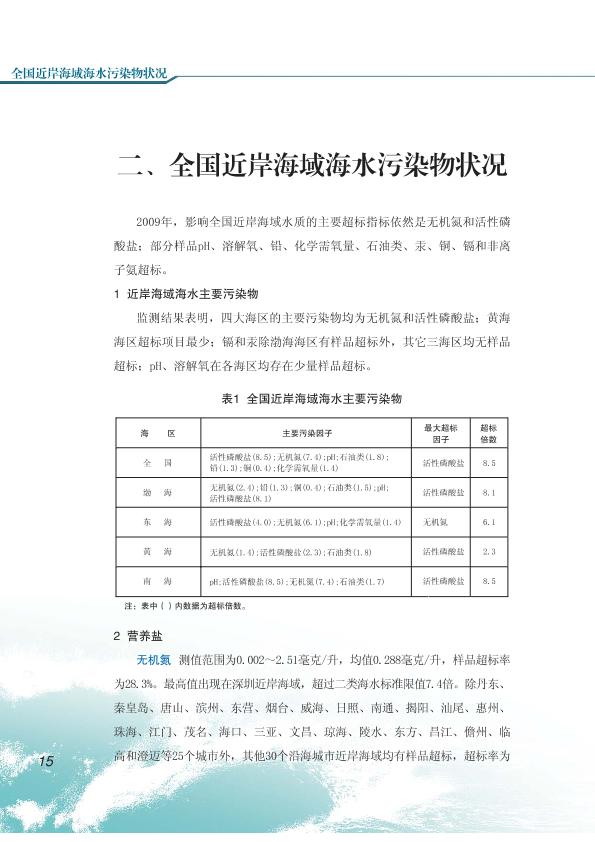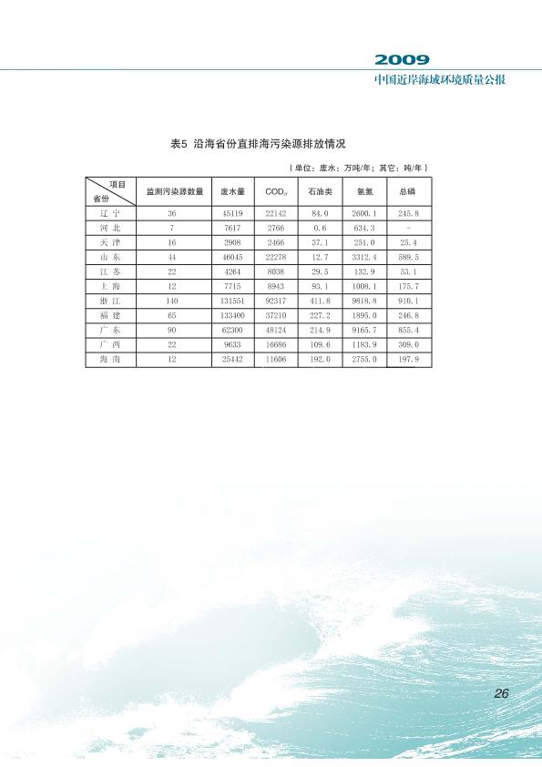 中國近岸海域環(huán)境質(zhì)量公報(bào) 2009年