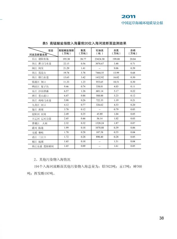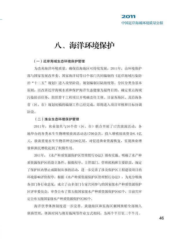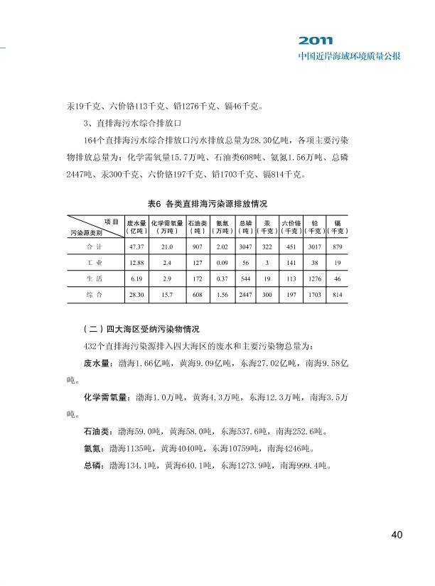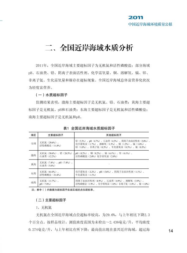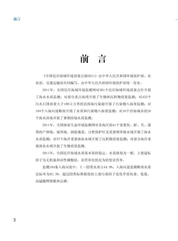 中國近岸海域環(huán)境質(zhì)量公報 2011年