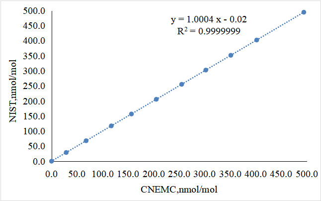 此前,監(jiān)測總站分別于2017、2019與美國國家標(biāo)準(zhǔn)與技術(shù)研究所(NIST)開展了國際臭氧比對(duì),以進(jìn)一步確保我國臭氧監(jiān)測量值“源頭”的國際等效可比。今年10月,監(jiān)測總站再次與美國標(biāo)準(zhǔn)技術(shù)研究院(NIST)的SRP-0進(jìn)行國際比對(duì),比對(duì)斜率為1.0004、截距為-0.04,遠(yuǎn)低于斜率在(1.00±0.01)之間、截距在(0.0±1.0) nmol/mol之間的比對(duì)合格要求。