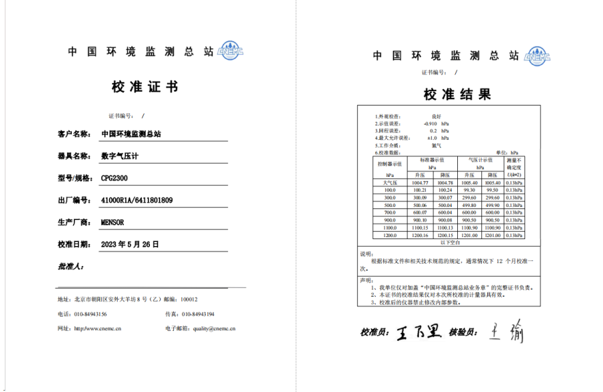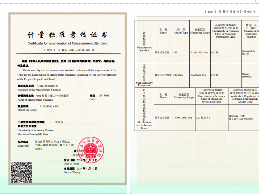 中國(guó)環(huán)境監(jiān)測(cè)總站順利完成0.01 級(jí)數(shù)字壓力計(jì)標(biāo)準(zhǔn)裝置 計(jì)量建標(biāo)工作